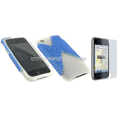 Product Name: Apple iPhone 3GS/ 3G White Silicone/ Blue Rhinestone Shell Case