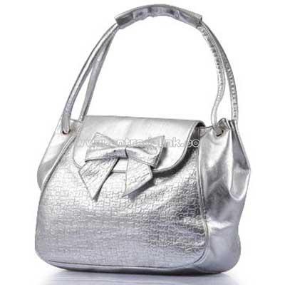 Product Name: Fashionable Glossy Finish Gray Handbag with Bow
